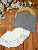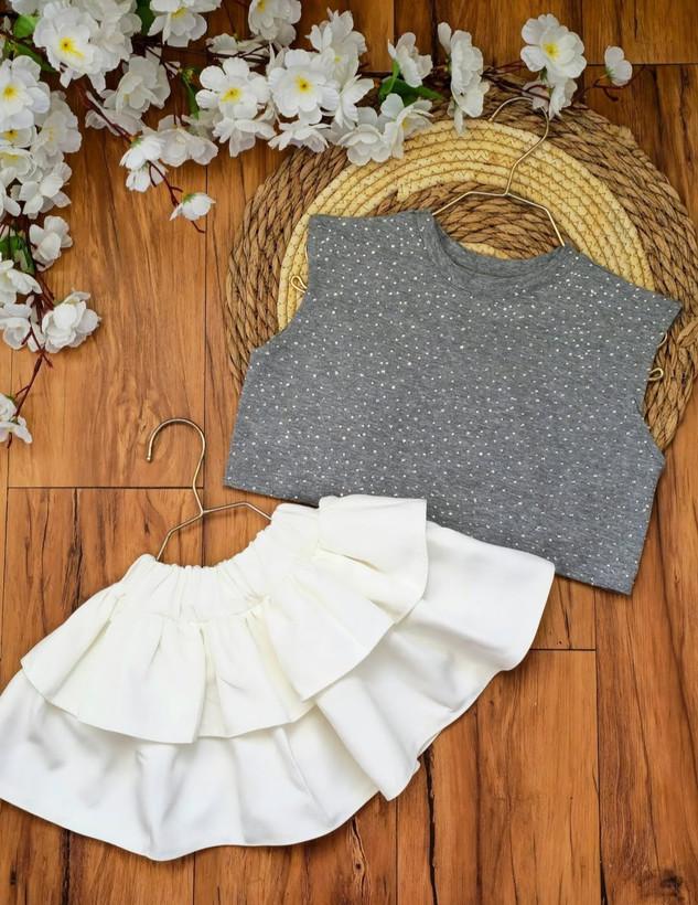 سایز ۴۰: قد کراپ: ۲۴، پهنا: ۳۴، قد دامن: ۲۲، پهنا کمر: ۲۱